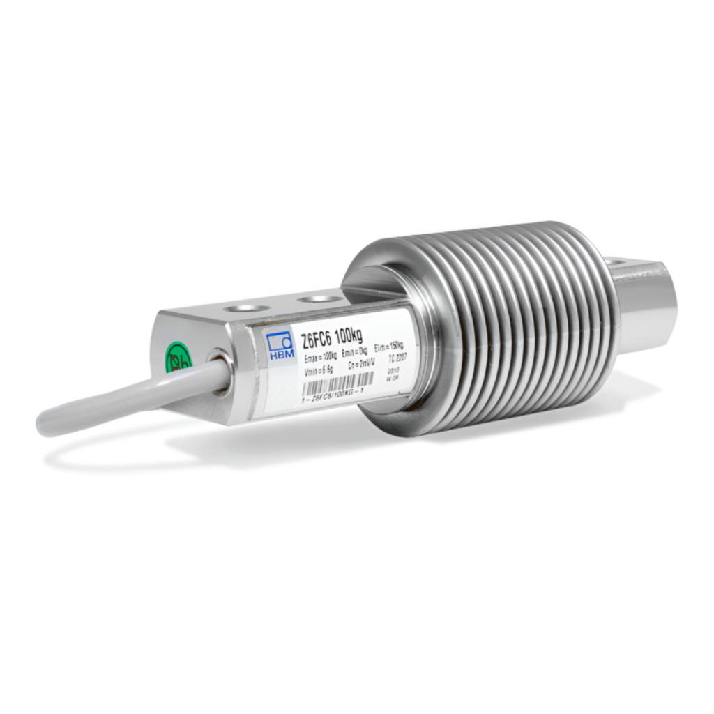 Imagen de la celda de carga HBM PW6D, robusta y precisa para aplicaciones industriales exigentes.