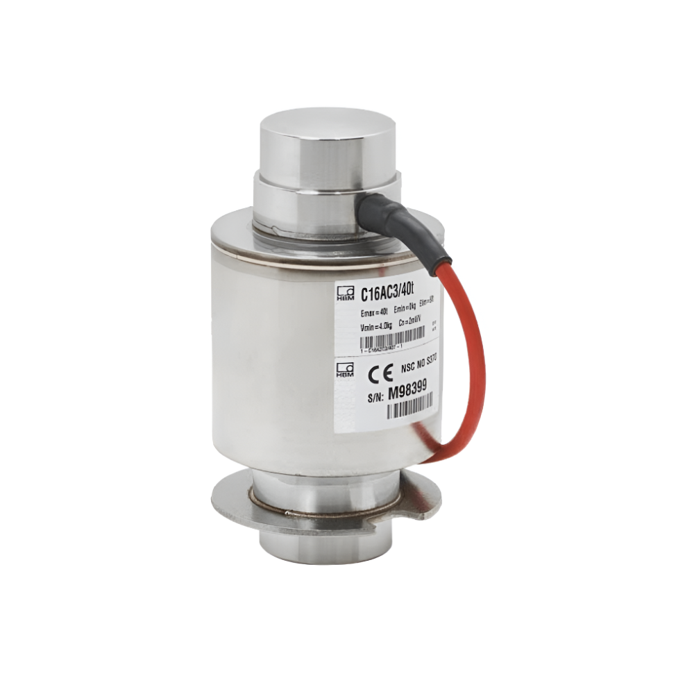 Celda de carga analógica tipo botella o canister HBM C16A. Celda de carga alemana con estructura resistente de acero inoxidable. Excelente para la construcción de sistemas de pesaje de alta capacidad que requieran resistencia y precisión durante años de trabajo continuo. Solicitada para el montaje en balanzas camioneras, balanzas de pesaje por ejes y balanzas para el pesaje en carretera.