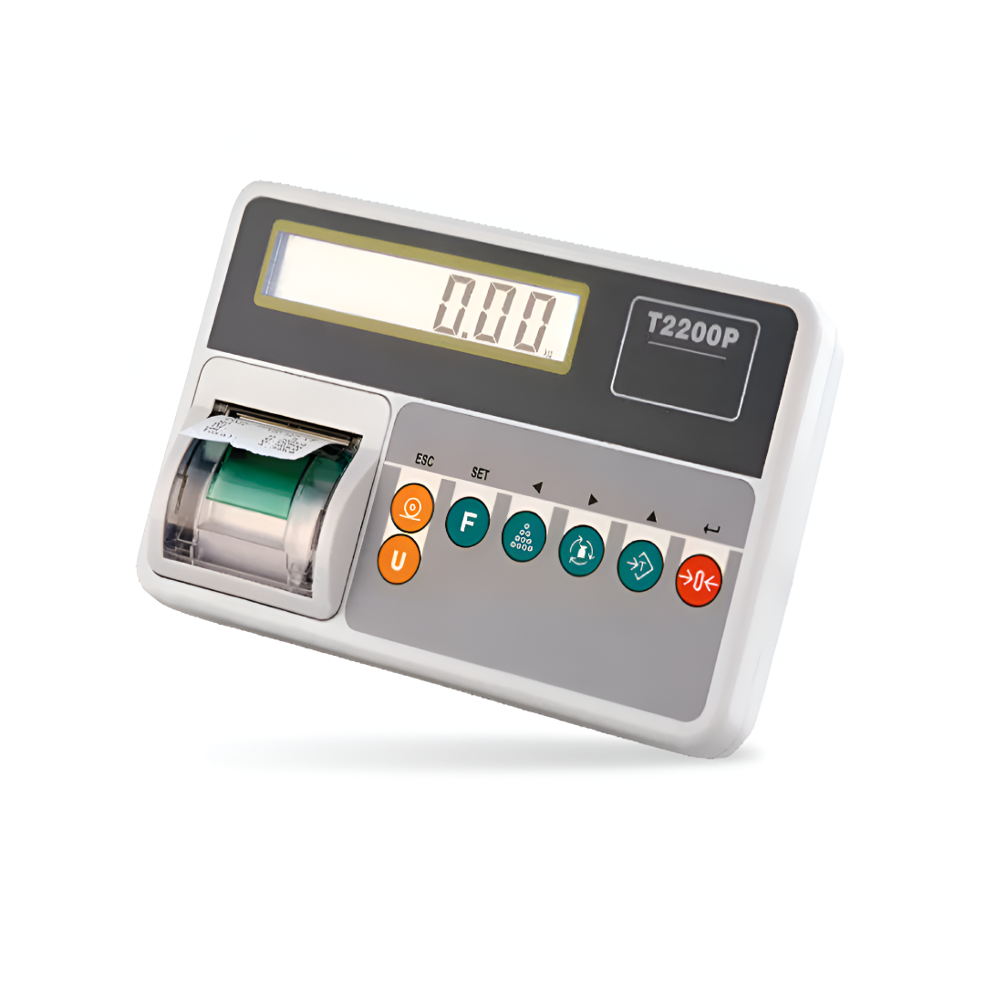 Indicador digital T-Scale T2200P con carcasa de alta resistencia en plástico ABS. Diseñado para aplicaciones industriales y comerciales, incorpora una pantalla LCD retroiluminada de alto contraste que permite una lectura clara del peso en diferentes condiciones de iluminación.