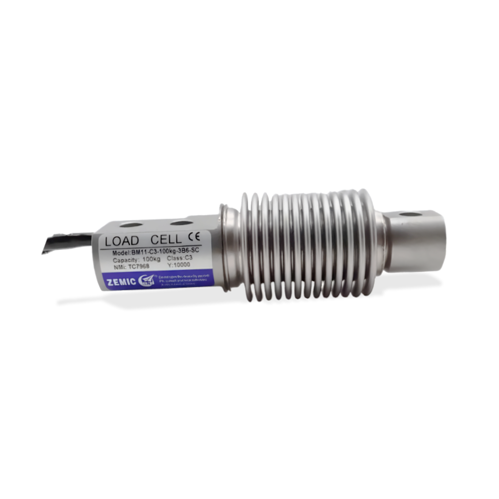 Celda de carga de flexión (bending beam) con fuelle Zemi BM11: Celda de carga europea con fuelle integrado para mayor protección y durabilidad. Excelente sensor para pallets, balanzas de plataforma, tanques y sistemas de tolvas pequeñas.